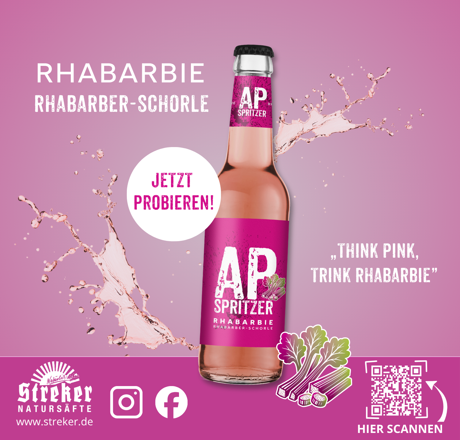 Eine spritzige Rhabarber-Schorle in der modernen 0,33L Longneck-Glas-Mehrweg-Flasche aus AsPach! Ideal für Veranstaltungen, Gastronomie, Firmen, Catering und natürlich zum Genießen für zuhause!